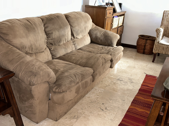 Sofá color gris en perfecto estado, súper cómodo! 2.8 x 1.6 x 0.6, incluye ottoman 0.7 x 0.7